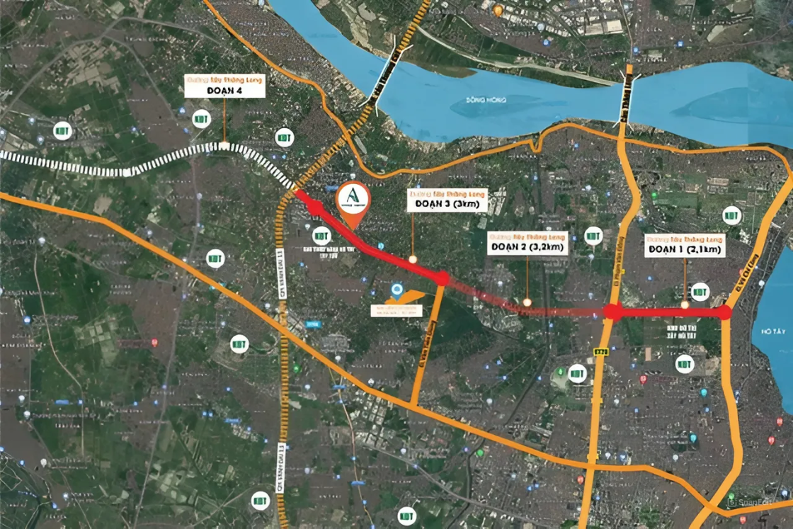 Dự án Xây dựng tuyến đường Tây Thăng Long (đoạn từ đường Vành đai 3,5 đến đường kênh Đan Hoài) nằm chủ yếu ở đoạn 3 của trục Tây Thăng Long.
